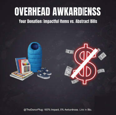 You want to fund a puppy rescue, not the electricity bill! We get it—funding overhead feels awkward. With The Donor Plug, your money goes directly to the product a charity needs, like a specific sleeping bag or laptop charger. That’s 100% impact, 0% awkward questions. Stop paying for someone else’s utilities and start funding the fun, impactful stuff! Tap the link to skip the whole fight. #OverheadDrama #100PercentImpact #NonFungibleFlex #TheDonorPlug